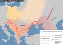 Le chroniqueur Théophane le Confesseur indique qu'après l'effondrement de la Grande Bulgarie, Alcek dirige une partie des Bulgares vers l'ouest. Ils s'installent dans le sud du Royaume lombard, dans le Duché de Bénévent, et fondent les villages de Gallo Matese, Sepino, Bojano et Isernia.