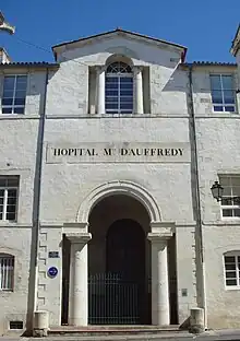 - « Hôpital Saint-Barthélemy puis Couvent-Hôpital des Charitains puis Hôpital Aufrédy - Dossier inventaire », notice no IA17000176, sur la plateforme ouverte du patrimoine, base Mérimée, ministère français de la Culture