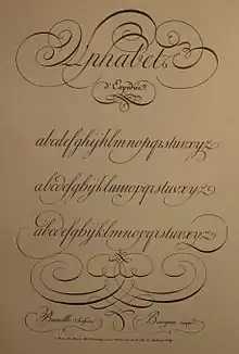 - Écritures anglaises d'après les meilleurs maîtres de Londres... Paris : Basset, [fin du XVIIIe siècle]. 2°, 20 f. gr. (La Rochelle BM).