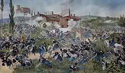 121. Dans l'un de ses rapports sur la bataille, La Marmora écrit : " Le général Pianell [...] conscient de la tournure défavorable de la bataille dans laquelle était engagée la division [du général Enrico] Cerale, de sa propre initiative, permit à une brigade avec quatre pièces [d'artillerie] de traverser le Mincio et arriva à temps pour arrêter la marche des colonnes ennemies qui avaient l'intention de tourner à gauche. Il les a repoussés et a fait plusieurs centaines de prisonniers". Dans Sidney Sonnino, Diario (1866-1912), Laterza, Bari, 1972, p. 65.