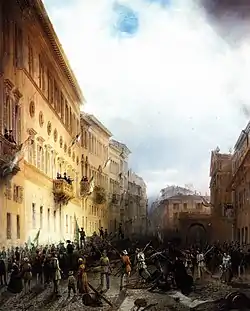Carlo Alberto à Milan tente en vain de calmer la foule contre l'armistice. Il a été sauvé par Alfonso La Marmora[18].