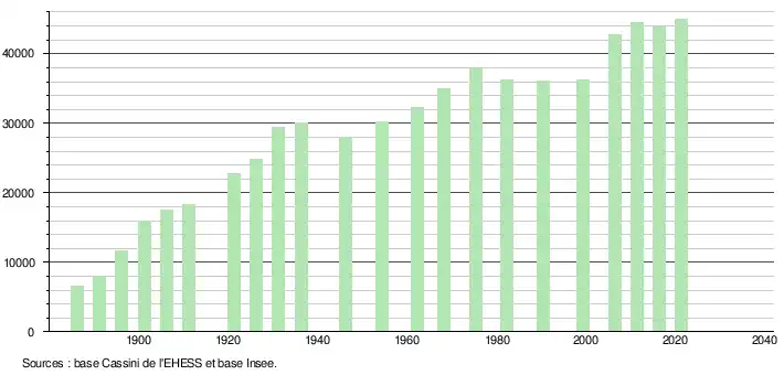 - Population municipale légale en vigueur au 1er janvier 2024, millésimée 2021, définie dans les limites territoriales en vigueur au 1er janvier 2023, date de référence statistique : 1er janvier 2021.