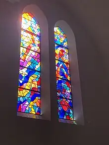 Les premiers vitraux intitulés Paysage bleu et Paysage doré sont posés en 1948. L'ensemble est inauguré en 1950[28].