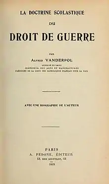 - Émile Chénon, La doctrine scolastique du droit de guerre, Paris, A. Pedone, (lire en ligne), « Préface Alfred VANDERPOL »