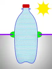 | Bleu: Bouteille contenant eau et eau de Javel |