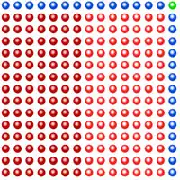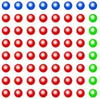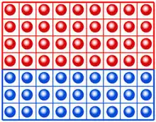 Un nombre carré est un nombre égal à un certain entier multiplié par lui-même. Par exemple, 9 est un nombre carré car 3 × 3 = 9. Il se présente de manière figurée comme un carré. Pour établir la liste des premiers carrés, l’arithmétique géométrique peut être utile. On suppose, par exemple, connue la liste jusqu’à 7 × 7 = 49. Pour trouver la valeur du carré suivant, de côté 8, on raisonne à l’aide de la figure de gauche. Le nombre 8 × 8 peut être vu comme la somme de 7 × 7 correspondant aux billes rouges, de 7 correspondant aux billes vertes et 8 correspondant aux billes bleues. De manière générale, on dispose de l’égalité[d 2] :