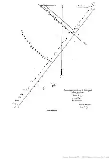 Un alignement AA', dirigé N. 35° E. - S. 35° O. Deux alignements BB' et CC', presque perpendiculaires au premier.