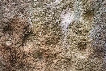 La grande majorité des monolithes présentent une granulométrie fine, à l’exception d’une pierre du dallage et de trois orthostates à la granulométrie plus grossière, attestant d’une source d’approvisionnement bien spécifique pour ces blocs-ci. Les tables de couvertures restantes présentent des tons clairs (gris à blanc) et une granulométrie fine. L’allée couverte est donc composée de plusieurs micro-faciès qui reflètent une certaine diversité des sources d’approvisionnement.