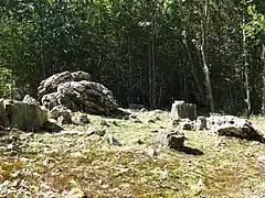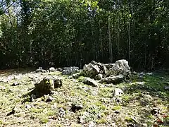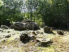 L'allée s'étire sur 7,20 m de long et sa largeur oscille entre 0,50 m et 090 m. Elle est enserrée dans un tumulus d'une quinzaine de mètres de diamètre d'environ d'une hauteur de 0,40 m maximum. L'allée est constituée d'orthostates en silex meulier. Une dalle intermédiaire de segmentation y avait été signalée en 1935 par M. Secondat et R. Marchadier mais il n'en existe plus trace. L'ensemble est recouvert par trois tables de couverture en partie effondrées dont une dalle magistrale de 3 m de long pour 2,30 m de large et 0,40 m d'épaisseur[2].