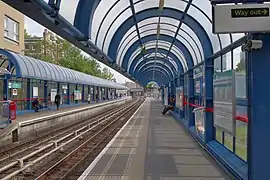 La plateforme de passage dispose de deux quais latéraux encadrant les deux voies de la ligne. En aval des quais, des appareils de voies permettent le passage d'une ligne à l'autre et l'accès à une voie de bifurcation permettant l'accès au Poplar Depot[2].