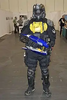 Une autre technologie employée est celle du combustible. Peu d'armes utilisent ce principe. Le canon à combustible utilise des barreaux de combustible en guise de chargeur et permettant de créer des projectiles de combustible concentré hautement explosif[21]. La carabine emploie approximativement le même principe, créant cependant de petits projectiles de combustible effilés, permettant de gagner en cadence mais perdant en puissance brute[21].