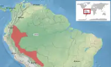 Sa présence en Colombie, dans les départements de Putumayo et d'Amazonas et au Brésil est incertaine.