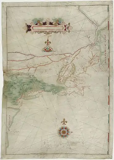 À la fin , soit vingt-sept ans et onze mois après l'expédition de Jean Cabot vers Terre-Neuve et seize ans après celle de Thomas Aubert, Jean de Verrazane, son frère Gérôme et leur pilote Antoine de Conflans, partis le de Madère sur une caraque de cent tonneaux, La Dauphine, naviguent depuis la Nouvelle-Angoulême et explorent la baie de Narragansett pendant deux semaines. Durant ces deux semaines, des contacts sont noués avec les autochtones. Ceux-ci leur désignent le lieu sous le nom d'Oranbega, qui signifie en algonquin havre et deviendra un toponyme mythique. Les explorateurs, poursuivant leur cabotage, mouillent dans l'estuaire du Pentagouët avant de repartir pour Dieppe en passant par Terre-Neuve, où pêchent depuis le XIVe siècle les Basques[12], depuis un peu moins d'un siècle[13] Malouins et Roscouins.