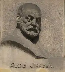 Alois Jirásek ( à Hronov - à Prague) était un écrivain tchèque, auteur de nombreux romans historiques et un dramaturge. Il était enseignant dans le secondaire jusqu'à sa retraite en 1909. Le thème de ses ouvrages est la représentation romantique du destin de la nation tchèque et de son progrès vers la liberté et la justice.