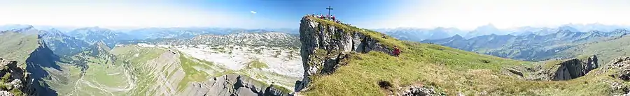 Une ligne de crêtes principales s'étend du sud, au niveau du col de Schrofen dans les environs de Warth, à l'est du massif, au niveau du col de l'Oberjoch. Elle dessine pour partie la frontière entre l'Autriche et l'Allemagne.