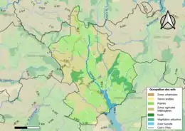 L'occupation des sols de la commune, telle qu'elle ressort de la base de données européenne d’occupation biophysique des sols Corine Land Cover (CLC), est marquée par l'importance des territoires agricoles (89,7 % en 2018), néanmoins en diminution par rapport à 1990 (90,4 %). La répartition détaillée en 2018 est la suivante : prairies (52,6 %), zones agricoles hétérogènes (36,8 %), forêts (8,5 %), eaux continentales (1,8 %), terres arables (0,3 %)[26].