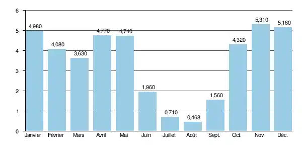Le VCN3 peut chuter jusque 0,130 m3/s, en cas de période quinquennale sèche, soit 130 litres par seconde[2].