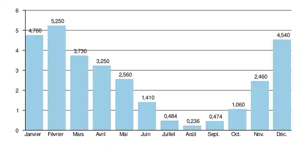 Ainsi aux étiages, le VCN3 peut chuter jusque 0,007 m3/s en cas de période quinquennale sèche, c'est-à-dire que le cours d'eau peut tomber presque à sec.