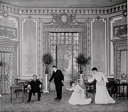 Aux côtés d'Amélie, se produisent sur scène les grands noms du théâtre : Réjane, Marcelle Lender, Jeanne Granier, Ève Lavallière, Mistinguett, Max Dearly ou Albert Brasseur. Étoile des opérettes d'Offenbach et de nombreuses comédies, elle est admirée par l'épouse du propriétaire des Variétés, Mme Paul Gallimard, pour « l'éblouissante blondeur de sa peau »[26],[27]. La beauté d'Amélie Diéterle ne laisse pas indifférent le maître des lieux, Paul Gallimard, fortuné et mécène des arts[28]. Du statut de protégée, elle devient sa maîtresse[29] et Gallimard finit par s'installer avec Amélie, qu'il surnomme « la petite »[30], dans un appartement au 33 boulevard Haussmann puis au 68 boulevard Malesherbes, délaissant sa femme, Lucie Duché, et ses trois fils dont le futur éditeur, Gaston[31]. La comédienne joue un certain nombre de rôles importants grâce à l'appui de Gallimard, ce qui ne va pas sans susciter des jalousies au sein des artistes[28].