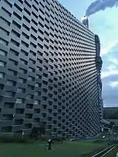 Le bâtiment occupe une emprise au sol de 41 000 m2, soit 4,1 hectares. Le toit culmine à 85 mètres de hauteur. La façade est constituée d'énormes briques d'aluminium, longues de 3,3 mètres et hautes de 1,2, placées de manière à ménager des vides dans lesquels s'insèrent des baies vitrées qui éclairent l'intérieur de l'usine[8].