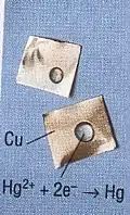 - Hg2+ + Cu → Hg + Cu2+.