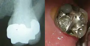 En dentisterie, un amalgame dentaire est un matériau utilisé pour obturer les cavités résultant de l'élimination de tissus dentaires affectés par des caries.
