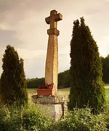 - Une croix en pierre à côté du lavoir symbolisant le pèlerin de Compostelle.