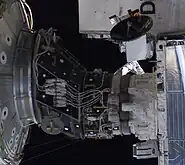L’amarrage, dans le domaine de l’astronautique, est l’opération réalisée dans l’espace et destinée à rendre solidaires des engins spatiaux[Note 1]. L'amarrage est d'abord mécanique c'est-à-dire qu'il solidarise les deux engins spatiaux. Il est généralement suivi d'un amarrage électrique et éventuellement fluidique qui assure la continuité des circuits électriques (énergie, signaux) et, dans le cas où un des engins ravitaille l'autre, le transfert de fluides (ergols, eau, oxygène, etc.).