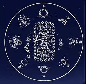 La « Tête de Taureau » grecque est aussi connue en Syrie où nous la trouvons sur une coupe astrale araméenne du VIIIe siècle avant notre ère[7], et cette figure est sur le chemin qui mène de Mésopotamie à la Grèce[8]. Nous trouvons en effet ; mul.GU4.AN.NA, d.is-le-e AGA de.a-nim, dans les Séries MUL.APIN, le premier traité d'astronomie mésopotamienne, découvert à Ninive dans la bibliothèque d'Assurbanipal et datant au plus tard de 627 av. è. c.[9]. Cette Is lê ou « Mâchoire d’Ilû, [le Taureau céleste] », semble être une figure analogique des Hyades dans le cadre de la constellation du Taureau qui contient d’autres étoiles, à commencer par mul.MUL, « l’Étoile par excellence », qui correspond aux Pléiades.