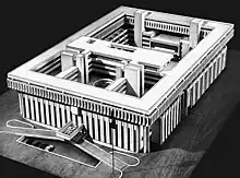 L'édifice, réalisation des trois architectes russes Anatoli Klimotchkine, Dmitri Lisitchkine et Igor Pokrovski (ru), est achevé en . Il est inauguré le de la même année par Léonid Brejnev[3], président du præsidium du soviet suprême de l'URSS. À cette occasion, il y reçoit le président français, Valéry Giscard d'Estaing, lors d'un déjeuner[4]. Dans la presse, le bâtiment de huit étages est parfois surnommé le « bunker »[5],[2].