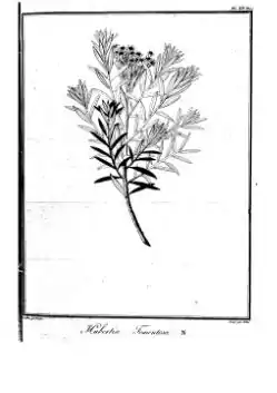 Hubertia tomentosa dessinée par Jean-Baptiste Bory de Saint-Vincent et reproduite à la fin du Voyage dans les quatre principales îles des mers d'Afrique qu'il fit paraître en 1804.