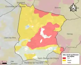 Le retrait-gonflement des sols argileux est susceptible d'engendrer des dommages importants aux bâtiments en cas d’alternance de périodes de sécheresse et de pluie. 78,8 % de la superficie communale est en aléa moyen ou fort (90,2 % au niveau départemental et 48,5 % au niveau national). Sur les 742 bâtiments dénombrés sur la commune en 2019, 636 sont en aléa moyen ou fort, soit 86 %, à comparer aux 91 % au niveau départemental et 54 % au niveau national. Une cartographie de l'exposition du territoire national au retrait gonflement des sols argileux est disponible sur le site du BRGM[28],[29].