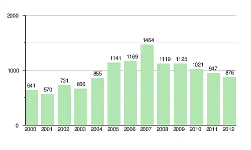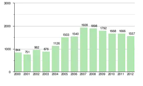 L'évolution du nombre d'habitants est connue à travers les recensements de la population effectués dans la commune depuis 1793. Pour les communes de moins de 10 000 habitants, une enquête de recensement portant sur toute la population est réalisée tous les cinq ans, les populations légales des années intermédiaires étant quant à elles estimées par interpolation ou extrapolation[35]. Pour la commune, le premier recensement exhaustif entrant dans le cadre du nouveau dispositif a été réalisé en 2007[36].