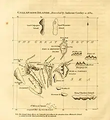 Carte des îles Galápagos par Cowley (1684)