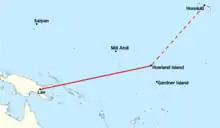 Amelia Earhart disparut le , après avoir été vue pour la dernière fois à Lae en Papouasie-Nouvelle-Guinée alors qu'elle tentait, avec son navigateur Fred Noonan, de faire le tour du monde par l'est, en passant par l'équateur, sur un bimoteur Lockheed Electra 10-E[22].
