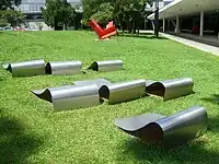 - Kaléidoscope, 1999. Modules en tôle d'acier inoxydable, courbés, avec différentes finitions : peint, poncé et poli. Gare de Brás, São Paulo.