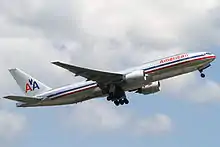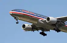 ![]() Boeing 777-200ER d'American Airlines arborant l'ancienne livrée. |