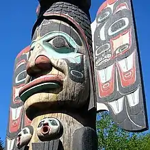 Chaque animal et élément sacré doit être représenté sous forme de totem qui peut prendre des formes diverses (mât sculpté, sac médecine, partie du corps d’un animal)[42]. Chaque clan a le sien : la tortue pour les Iroquois ; l’ours pour les Mohawks, le calumet pour les Cayugas. Ces groupes totémiques sont toutefois bien distincts des tribus[réf. nécessaire].