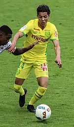 Harit (numéro 18) délivre une passe lors d'une action offensive.