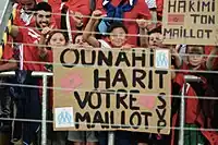 Le 1er juillet 2023, l'Olympique de Marseille annonce la levée de son option d'achat pour environ 5 millions d'euros, s'engageant pour le club phocéen pour une durée de quatre ans[30]. Le 15 juillet, Amine Harit remonte sur le terrain pour la première fois depuis sa blessure, entrant en jeu lors d'un match amical de présaison contre Nîmes Olympique à la 68e minute au Centre d'entraînement Robert-Louis-Dreyfus (victoire, 2-0)[31]. Son arrêt de football aura alors duré huit mois et deux jours[32]. Ayant retrouvé le banc en début de saison à la suite d'un système de jeu de Marcelino, ne convenant pas selon lui au style de jeu d'Harit, ce dernier est limogé en mi-septembre 2023 pour être remplacé par Jacques Abardonado. Le 21 septembre, après le changement d'entraîneur, Harit retrouve sa place de titulaire à l'occasion d'un match de Ligue Europa contre l'Ajax Amsterdam à la Johan Cruyff Arena et livre deux passes décisives sur les deux premiers buts inscrits (match nul, 3-3)[33]. Deux semaines plus tard, toujours en Ligue Europa, il est titularisé contre Brighton & Hove Albion FC et délivre une passe décisive sur le deuxième but marseillais inscrit par Jonathan Clauss (match nul, 2-2)[34]. Ayant enchaîné plusieurs prestations de haut niveau, il remporte le prix du meilleur joueur du club du mois de septembre 2023[35].