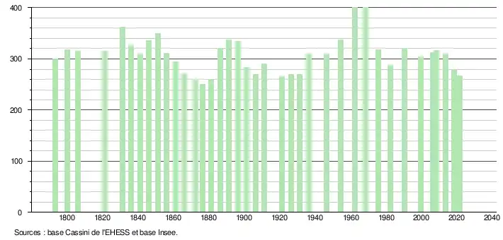- Fiches Insee - Populations légales de la commune pour les années 2006, 2007, 2008, 2009, 2010, 2011, 2012, 2013, 2014, 2015, 2016, 2017, 2018, 2019, 2020 et 2021.