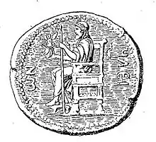 - Une femme assise sur un rocher entre Jupiter et Mercure à Rome (maison de Livie, Ier siècle)