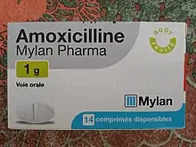 L'amoxicilline est un antibiotique β-lactamine bactéricide de la famille des aminopénicillines indiqué dans le traitement des infections bactériennes à germes sensibles. L'amoxicilline est l'antibiotique le plus couramment utilisé, notamment chez les enfants, car elle présente une bonne absorption par voie orale, un spectre d'action antimicrobien large et un coût faible. Elle fait partie de la liste des médicaments essentiels de l'Organisation mondiale de la santé [2].