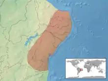 Aire de répartition de l'espèce Amphisbaena pretrei selon l'UICN (consulté le ).