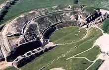 Vue nord-est de l'amphithéâtre (gradins et caveae).