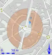 Dans la voirie moderne, la rue Magenta traverse le monument selon son grand axe et trois autres voies se rejoignent au centre de son arène. Trois autres rues, enfin, soulignent la courbure de sa cavea, l'une en bordure du sud à l'est, les deux autres au milieu des gradins sur toute la moitié occidentale[2].