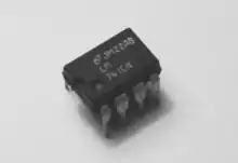 Le Fairchild μA709 créé par Bob Widlar en 1965 fut le premier amplificateur opérationnel intégré disponible en grande quantité. Le μA741 l'a remplacé dès 1967, avec de meilleures performances tout en étant plus stable et plus simple à mettre en œuvre[8]. Il est devenu omniprésent en électronique. Plusieurs fabricants en produisent des versions améliorées, ou des circuits plus performants qui peuvent se substituer à lui dans un circuit de conception ancienne. Les premiers amplificateurs intégrés se basaient sur le transistor bipolaire. À la fin des années 1970, on en produit à JFET, et à partir du début des années 1980, à MOSFET. Leur utilisation a progressé de la basse fréquence et faible puissance vers tous les domaines.
