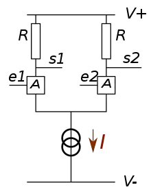 - Tahar Neffati, L'électronique de A à Z, Paris, Dunod, , p. 11-12 « Amplificateur différentiel »