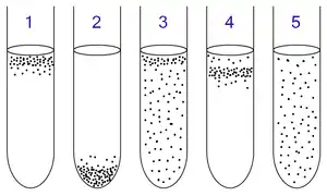 3: Pour celles du type aérobie facultative se rassemblent le plus souvent au bout supérieur de l'éprouvette, là où la respiration aérobie est la plus favorisée; mais comme l'absence de dioxygène ne les affecte pas, on peut observer aussi leurs présences tout au long de l'éprouvette.