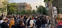 Une fusillade se produit le 3 mai 2023 dans l'école primaire Vladislav Ribnikar de Vračar, l'une des municipalités de la Ville de Belgrade, ce qui choque profondément le pays. Un élève âgé de treize ans muni d'une arme à feu tue neuf autres élèves et un agent de sécurité avant d'être maîtrisé par les forces de police. Le lendemain même, une seconde fusillade voit une homme de 21 ans tuer huit personnes dont un policier avant de prendre la fuite. Ces évènements provoquent un vif débat sur la question du port d'arme. Malgré des lois très strictes, la Serbie connaît alors l'un des taux de possession d'armes les plus élevés au monde[35], à égalité avec le Monténégro voisin, derrière les États-Unis et le Yémen[36]. La Serbie et les Balkans occidentaux sont l'objet d'un important marché noir d'armes, très répandues depuis les guerres yougoslaves[37],[38],[39]. En réaction, le gouvernement serbe annonce de nouvelles mesures restreignant la possession d'armes à feu. Le ministre de l'Éducation Branko Ružić fait cependant plusieurs déclarations dans lesquelles il rejette la responsabilité des évènements sur les jeux vidéos et « l'influence des valeurs occidentales », tandis que la présidente du gouvernement Ana Brnabić refuse d'admettre une défaillance des autorités[40],[41]. Des manifestations de grande ampleur ont alors lieu dans le pays, notamment à Belgrade, exigeant la démission du gouvernement ainsi que des sanctions contre les chaînes de télévisions, radios et autres médias accusé de promouvoir la violence. Les manifestations, rapidement soutenues et organisées par l'opposition qui choisit cependant de se tenir en retrait, se poursuivent de manière hebdomadaire tout au long du reste de l'année[42],[43],[44]. Le gouvernement réagit en qualifiant les manifestants de « casseurs » et de « hooligans », Vučić les désignant lui même comme des « hyènes et des vautours », tout en accusant l'opposition de chercher à commettre un coup d'État[45],[46]. Confronté à la poursuite dans le temps du mouvement de protestation, ainsi qu'à la pression de l'opposition qui tente sans succès de faire adopter une motion de censure début juillet, le président annonce lors d'une conférence de presse la tenue d'élections anticipées en avril ou mai 2024, en même temps que les élections municipales. La date du 17 décembre 2023 est par la suite avancée, sans être officiellement confirmée[47],[48], jusqu'à la dissolution de l'Assemblée nationale le . Les élections municipales sont avancées dans la foulée[49].